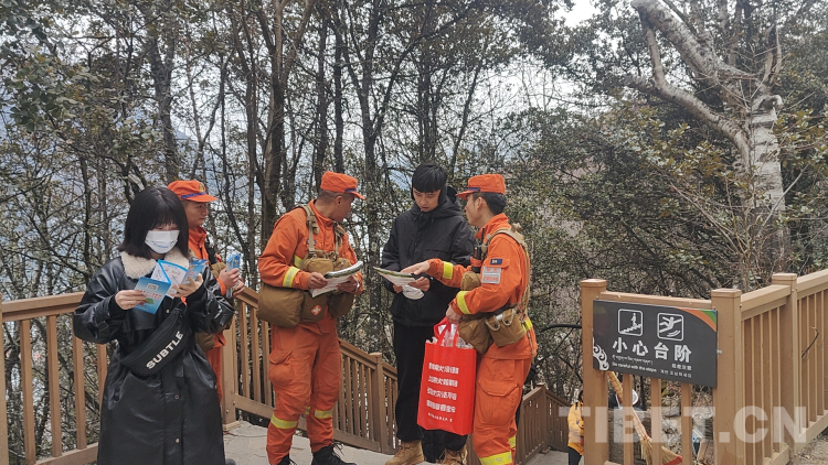 “您好,您在游玩過程中一定要注意安全用火,如發(fā)現(xiàn)火情,請(qǐng)?jiān)诖_保自身安全的前提下?lián)艽?2119報(bào)警電話……”森林消防指戰(zhàn)員在人流密集的景區(qū)設(shè)立執(zhí)勤點(diǎn),向來(lái)往游客發(fā)放防火常識(shí)宣傳手冊(cè),面對(duì)面地科普森林防火常識(shí),嚴(yán)格管控野外火源、及時(shí)排除火險(xiǎn)隱患。
