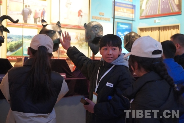 圖為扎西平措為同學(xué)介紹自己知道的關(guān)于獸首的歷史 攝影:王茜