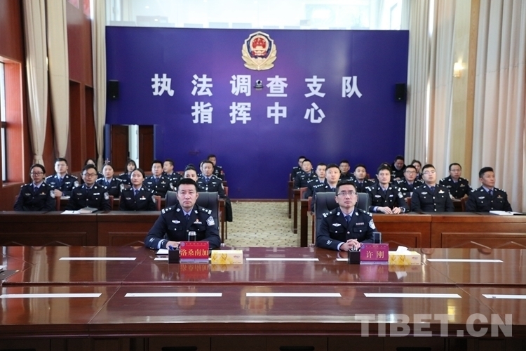 圖為西藏邊檢總站執(zhí)法調查支隊組織各級民警集中收看開幕會