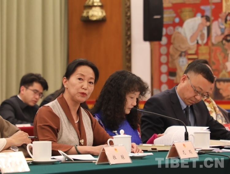 圖為尼瑪在十四屆全國人大二次會(huì)議西藏代表團(tuán)開放團(tuán)組會(huì)議上發(fā)言
