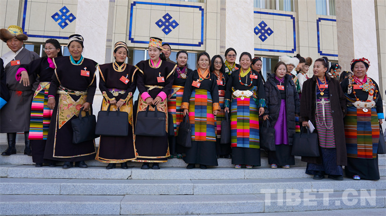 資料圖:參加西藏自治區(qū)第十二屆人民代表大會的部分女代表走出會場 攝影:王淑