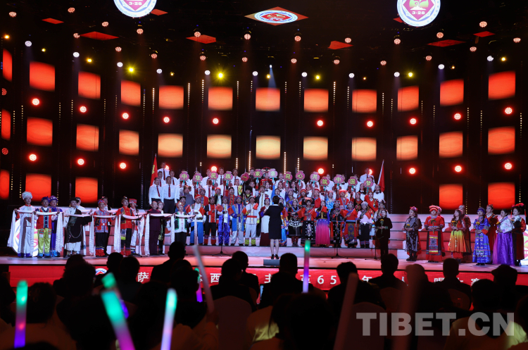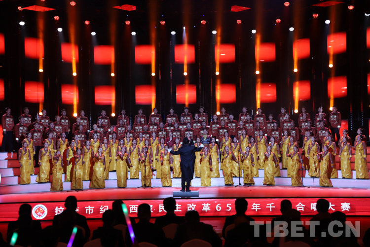 中國西藏網(wǎng)訊 3月27日晚,《盛世中國 幸福西藏》拉薩市紀念西藏民主改革65周年千人合唱大賽在拉薩師范高等??茖W校體育館舉行。
