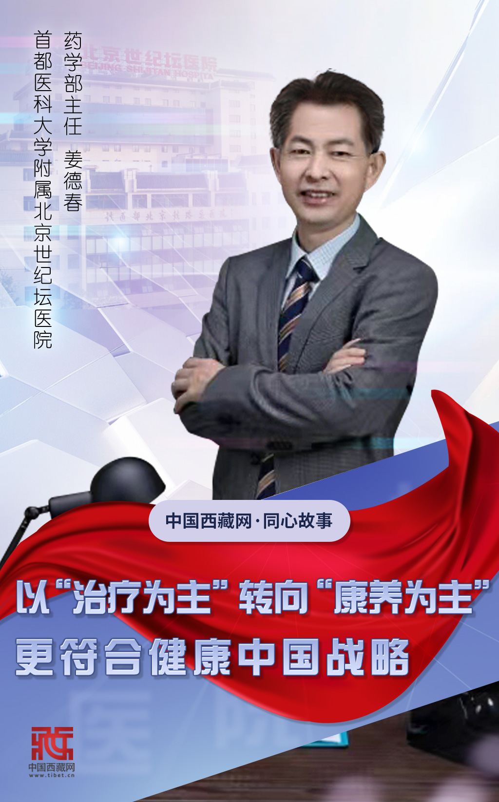 姜德春認(rèn)為,我們國家實(shí)施的“健康中國”戰(zhàn)略就是要以健康為主。以前我們醫(yī)療模式是以“治療為主”,現(xiàn)在開始從“治療為主”向“預(yù)防為主”轉(zhuǎn)變,保持健康就是一種預(yù)防的狀態(tài)。通過康養(yǎng)獲得更高水平的生活質(zhì)量,這是人民對(duì)健康的需求,也是實(shí)現(xiàn)“健康中國”戰(zhàn)略的最大目標(biāo)。作為藥師,他認(rèn)為從“治療為主”轉(zhuǎn)向“康養(yǎng)為主”是符合時(shí)代發(fā)展,實(shí)現(xiàn)健康中國的一個(gè)非常重要的舉措,意義深遠(yuǎn)。(中國西藏網(wǎng) 記者/趙振宇 曹美晴 海報(bào)設(shè)計(jì)/郝蕊)