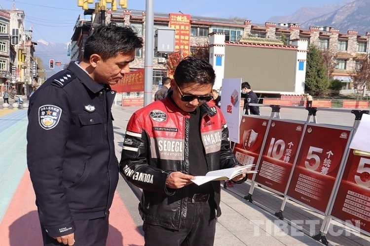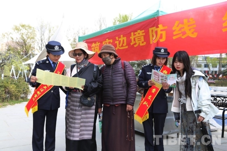 圖為西藏邊檢總站執(zhí)法調查支隊民警在西藏拉薩向群眾普及國家安全知識