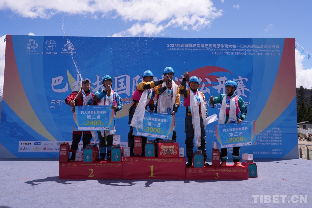 圖為兩人漂流艇競速賽頒獎(jiǎng)儀式 攝影:旦曲