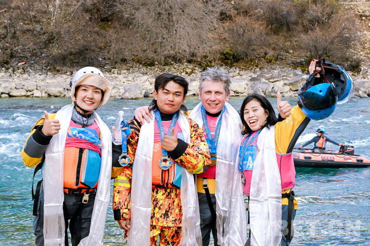 公開賽的第二天,高原峽谷天氣雖有短暫突變,比賽也一度延遲,但接下來云開霧散的巴河河道,卻在雪山、杜鵑、桃花和村落的映襯下格外清麗脫俗,29支四人漂流艇拉力賽隊(duì)伍,隨著發(fā)令槍響,依次如利箭般劃出。經(jīng)全程8公里奮勇拼搏,由成都伽斯特健身俱樂部、重慶彭水縣和朝陽戰(zhàn)隊(duì)三支隊(duì)伍獲四人漂流艇拉力賽前三名。
