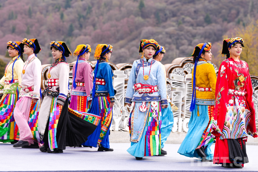 圖為“世界的阿壩”2024年系列網(wǎng)絡宣傳活動啟動儀式上嘉絨藏族服飾展示 攝影:趙振宇
