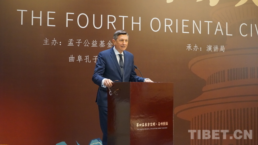 中國西藏網訊 5月15日,以“孟子智慧:文明交流互鑒,奔向人類命運共同體”為主題第四屆東方文明高峰對話在北京舉行。斯洛文尼亞前總統(tǒng)博魯特·帕霍爾、世界孔子宗親聯誼總會執(zhí)行會長孔眾、北京師范大學中國易學文化研究院院長張濤等嘉賓分別作主旨發(fā)言。