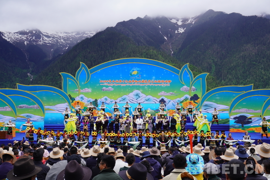 開幕式在群舞《丹旭承韻》中拉開序幕,《百鳥爭鳴》《圣潔米林·心之向往》《咱們西藏》《高原紅》《同心同行》等14個民俗特色歌舞依次上演,知名歌手容中爾甲、三農(nóng)主播阿佳旺姆等輪番上臺,為當?shù)厝罕姾陀慰蛶硪粓鼍实亩嗝褡逄厣栉枋⒀?。悠揚婉轉的民族歌曲、多姿多彩的非遺舞蹈、耳熟能詳?shù)某绷饕魳罚@得現(xiàn)場掌聲、歡呼聲不斷。