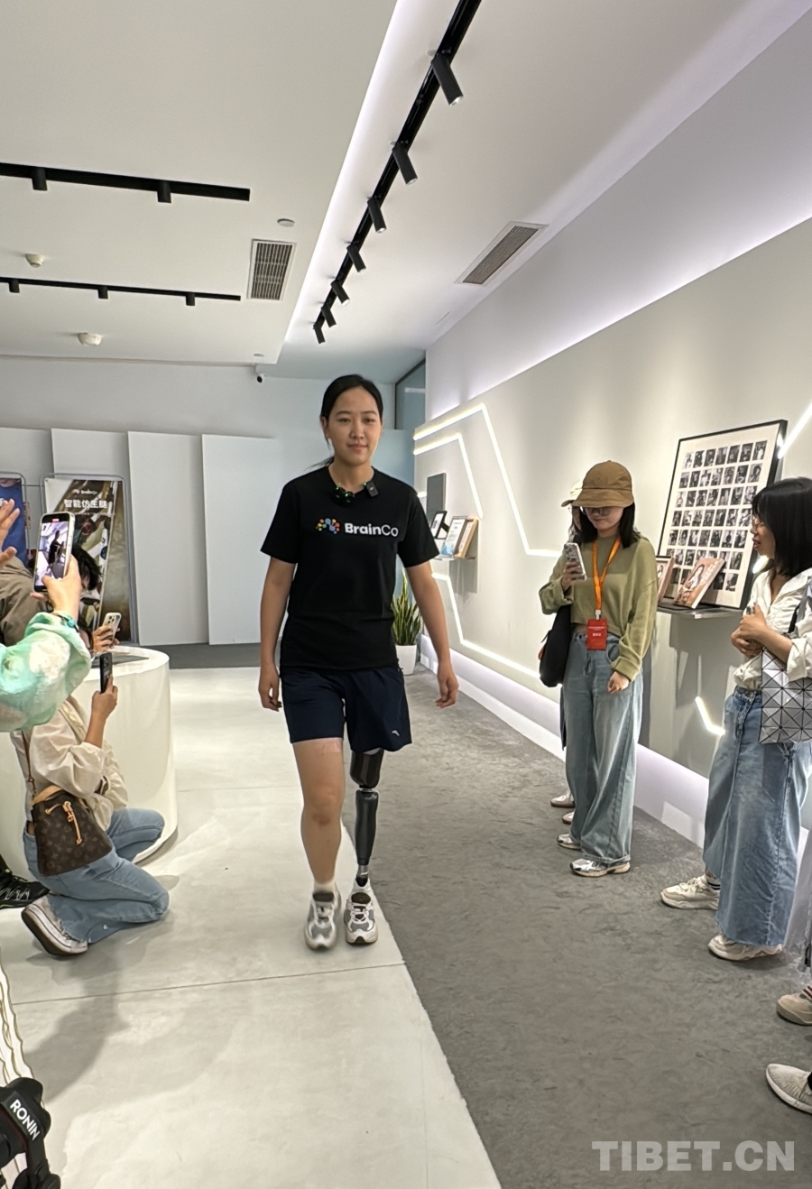 圖為BrainCo強(qiáng)腦科技產(chǎn)品體驗官高瑞霞在自信地走路