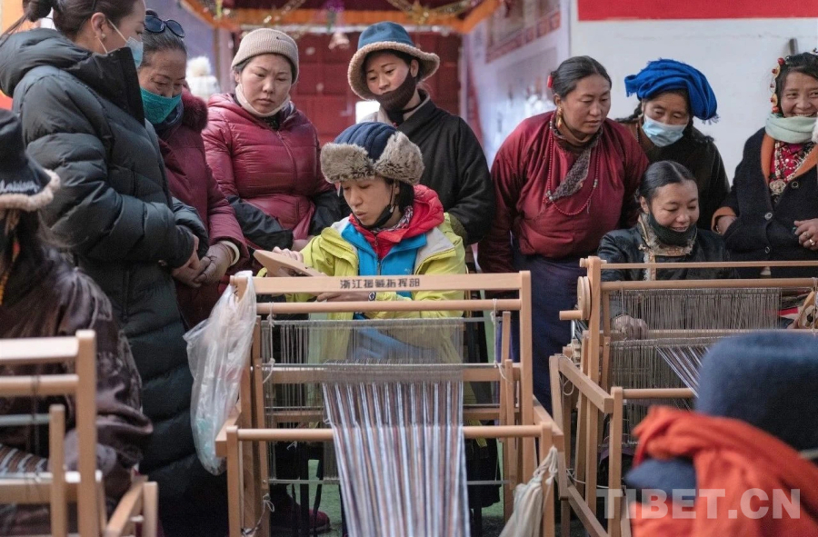 2020年,“小巷三尋”公司負責人鄭芬蘭帶領10人團隊、帶著50臺新式織布機,跨越4000多公里的青藏線,從杭州出發(fā)前往西藏那曲,為那曲當?shù)啬撩袢罕妿ジ蝇F(xiàn)代化的生產(chǎn)工具。經(jīng)過一路顛簸,一到那曲,鄭芬蘭和隊員們便克服海拔4500米高原反應帶來的身體不適,開始組裝織布機。