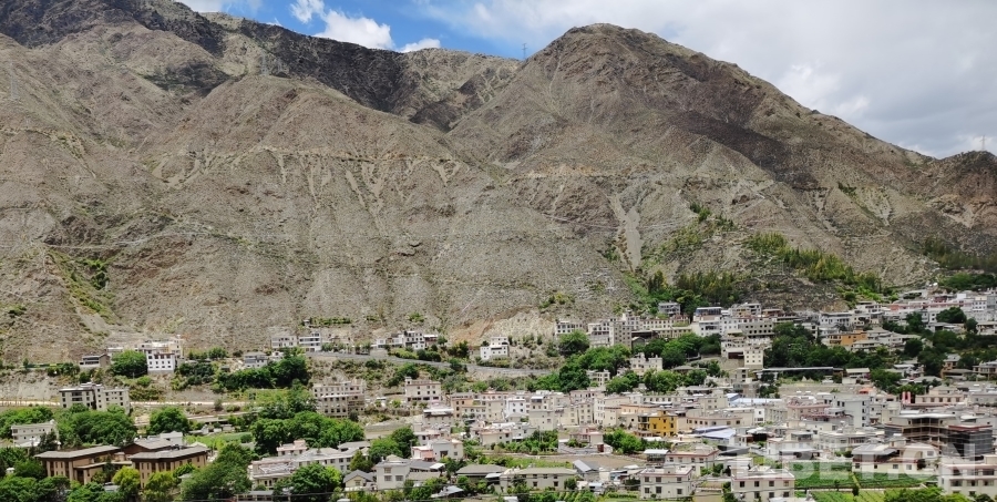 蜿蜒的山路,陡峭的崖壁,車子在兩山之間沿著金沙江疾馳。山上一片荒蕪,沒有一點綠色,熱浪滾滾而來,我們終于來到了得榮,這個因陽光充足而有“太陽谷”美譽的地方。得榮縣位于四川省甘孜藏族自治州西南部,有“長征國家文化公園甘孜段南大門”之稱。