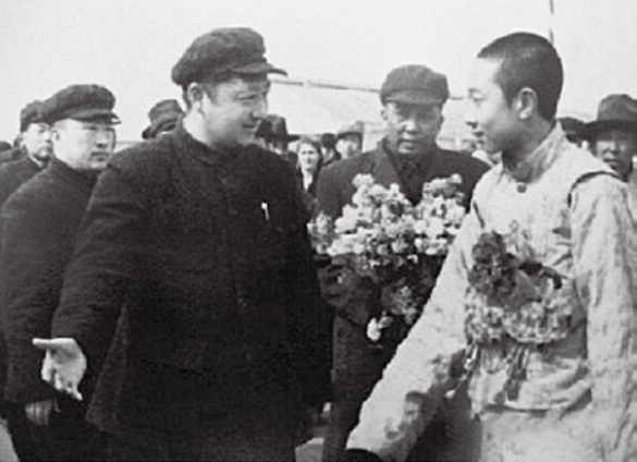 同年四月下旬,班禪從宏覺(jué)寺起程,赴京參加和平解放西藏的協(xié)議的簽訂。路過(guò)西安時(shí),習(xí)仲勛親自到機(jī)場(chǎng)迎接班禪一行。這是班禪第一次會(huì)見(jiàn)習(xí)仲勛同志。他走下迎機(jī)艙時(shí),習(xí)仲勛迎上來(lái)和班禪緊緊握手。這是他們神交已久的握手,彼此都留下了深刻的記憶。時(shí)隔多年后,班禪還給他的經(jīng)師和摯友嘉雅活佛說(shuō):“之前,我已和多少人握過(guò)手了。但習(xí)主任握著我的手時(shí),我心中有一種全新的感悟,好像有一股溫暖的暖流在心中流過(guò),這就是佛說(shuō)的緣分福報(bào)?!绷?xí)仲勛同志回憶他同班禪初次見(jiàn)面時(shí)的情形寫道:“一個(gè)活脫脫的英俊藏族少年活佛形象出現(xiàn)在我的眼前……有志不在年高,他的愛(ài)國(guó)熱情和坦誠(chéng)豪爽給我留下深刻的印象?!边@次見(jiàn)面是習(xí)仲勛和班禪四十載革命友誼的新起點(diǎn)。4月27日,班禪及堪廳僧俗官員一行45人抵達(dá)北京。周總理、朱德副主席等中央領(lǐng)導(dǎo)前往火車站迎接班禪?!拔逡弧眹?guó)際勞動(dòng)節(jié),毛主席在天安門城樓上親切接見(jiàn)班禪和阿沛,并作了長(zhǎng)時(shí)間的談話,意義重大。