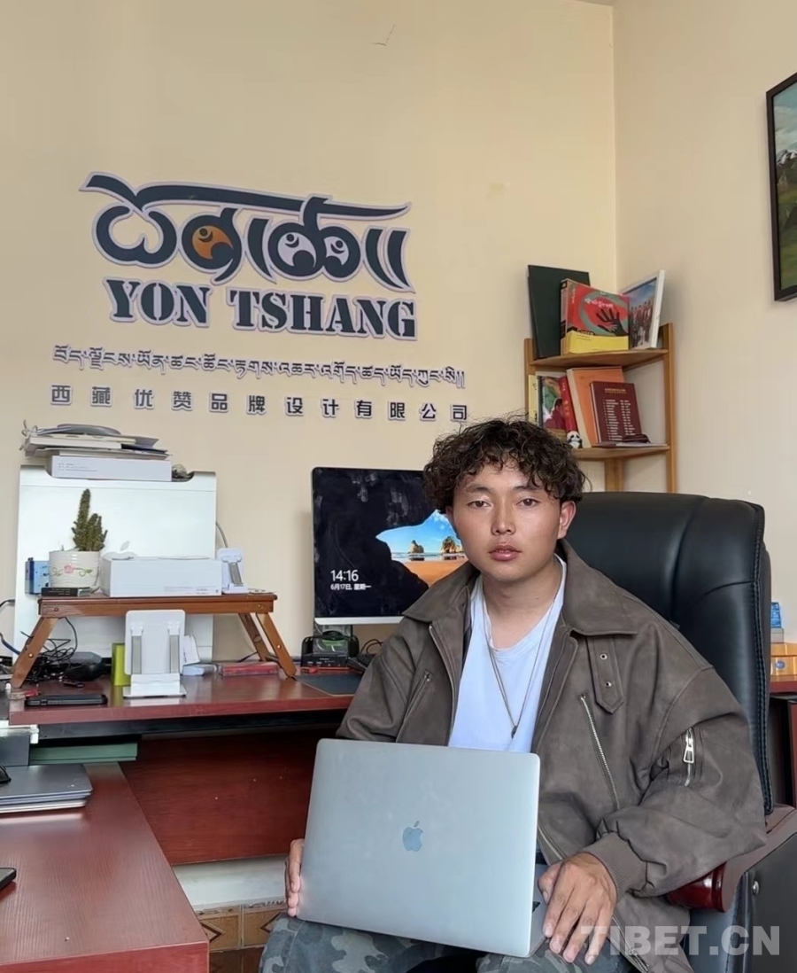 次仁頓珠是學(xué)院2022年平面設(shè)計(jì)專業(yè)的畢業(yè)生,也是全國(guó)第一屆職業(yè)技能大賽“西部技能之星”獲得者,我們到訪時(shí)他剛好回校做單元展。次仁頓珠畢業(yè)后和四個(gè)合伙人一起在拉薩創(chuàng)業(yè),創(chuàng)辦了優(yōu)贊品牌設(shè)計(jì)有限公司,主要業(yè)務(wù)包括產(chǎn)品包裝設(shè)計(jì)、logo設(shè)計(jì)和品牌設(shè)計(jì)。創(chuàng)業(yè)伊始全靠幾個(gè)合伙人自己出去推銷,如今經(jīng)過老客戶口口相傳,很多客戶主動(dòng)來找他們,生意越來越好。“創(chuàng)業(yè)兩年多,我大概分紅了40多萬,今年我們幾個(gè)合伙人都買了車。未來我們計(jì)劃擴(kuò)大公司的店面,好好裝修,然后開始線上直播,以后在拉薩買了房子從昌都接?jì)寢屢黄饋碜??!贝稳暑D珠向我們介紹,笑容中帶著羞澀與驕傲。