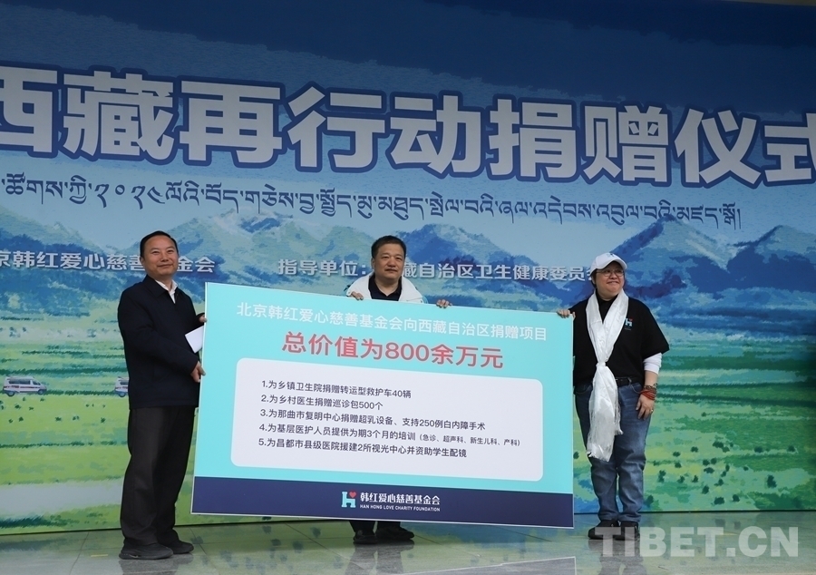 中國(guó)西藏網(wǎng)訊 6月27日,韓紅愛心·關(guān)愛西藏再行動(dòng)捐贈(zèng)儀式在西藏拉薩舉行。