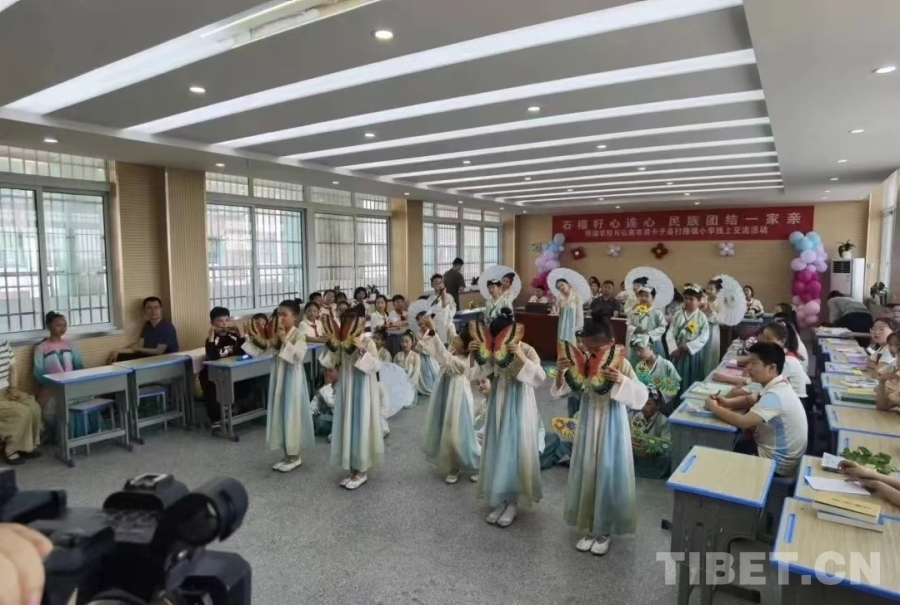 通過開展活動(dòng)聯(lián)誼豐富交流內(nèi)容打造特色活動(dòng)品牌,圍繞民俗文化、人文地理、美食美景等內(nèi)容交流互動(dòng),學(xué)生穿著民族服飾,互學(xué)方言共同表演經(jīng)典誦讀《上春山》、古箏表演《三字經(jīng)》《國(guó)風(fēng)美少年》、鍋莊表演《強(qiáng)巴曲?!返裙?jié)目,展示了中華民族優(yōu)秀傳統(tǒng)文化,進(jìn)一步增進(jìn)學(xué)生之間的文化交流不斷增強(qiáng)學(xué)生“五個(gè)認(rèn)同”。