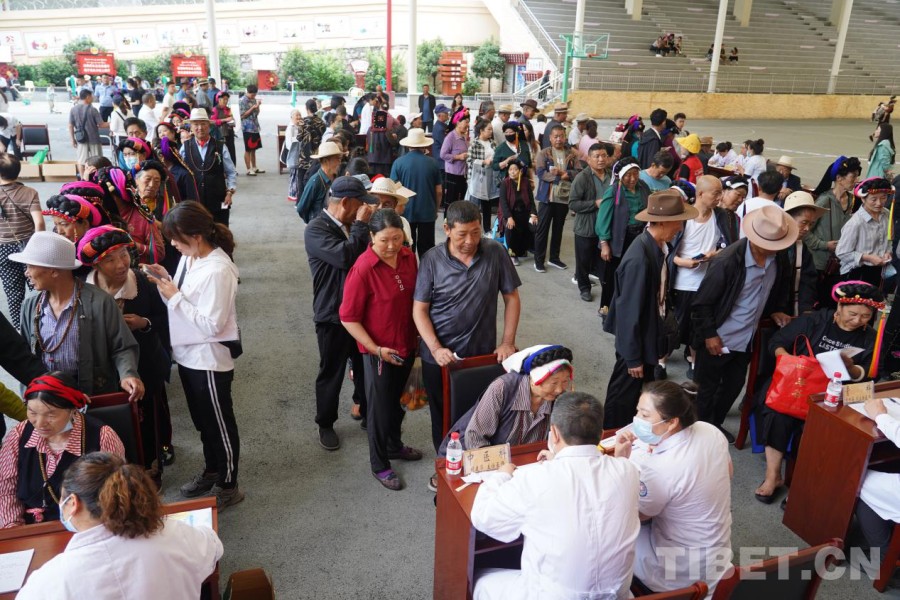 7月8日,義診專家分為3個(gè)小組,在縣城東女國(guó)廣場(chǎng)、丹東鎮(zhèn)和東谷鎮(zhèn)正式開(kāi)展義診活動(dòng)。上午9時(shí),在縣城東女國(guó)廣場(chǎng),得到消息的群眾早早來(lái)到現(xiàn)場(chǎng)排隊(duì)領(lǐng)號(hào)分流等待就診,現(xiàn)場(chǎng)共設(shè)立了10多個(gè)專業(yè)診療臺(tái),涵蓋了心內(nèi)科、骨科、神經(jīng)內(nèi)科等,確保能夠滿足當(dāng)?shù)鼐用竦尼t(yī)療需求。