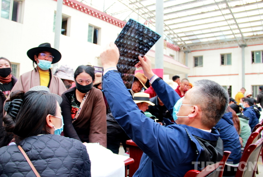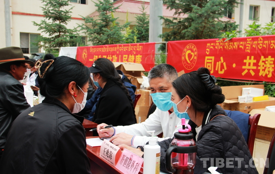 圖為2024“同心·共鑄中國心”甘孜行大型公益活動石渠縣義診現場,醫(yī)療專家正在查看患者用藥情況 攝影:劉莉