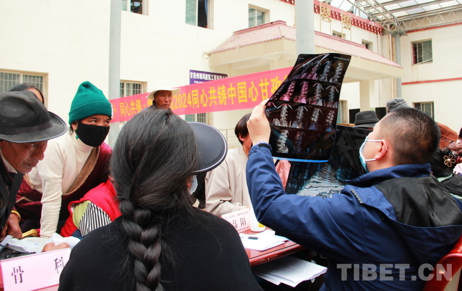 圖為2024“同心·共鑄中國心”甘孜行大型公益活動石渠縣義診現場,中國人民解放軍總醫(yī)院第一醫(yī)學中心骨科副主任醫(yī)師高陽正在查看患者帶來的片子 攝影:劉莉
