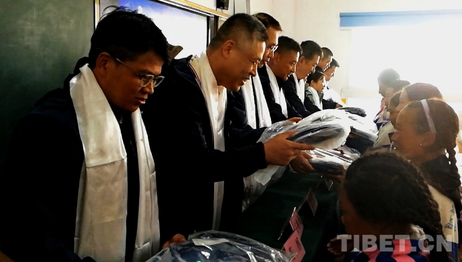 圖為醫(yī)療專家們向四川省甘孜州石渠縣第二完全小學(xué)學(xué)生贈送學(xué)習(xí)用品 攝影:劉莉