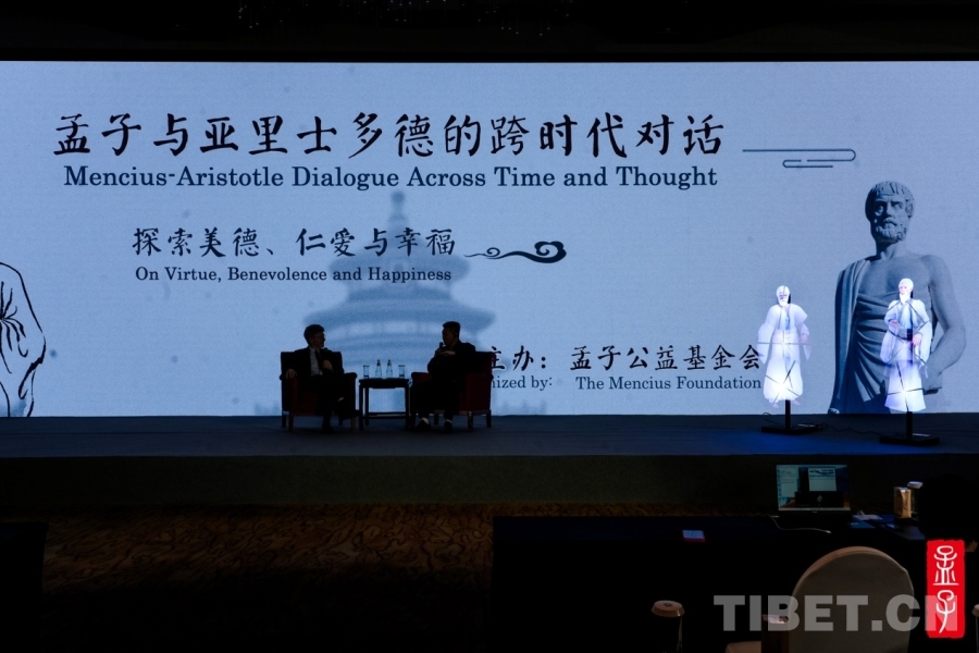 中國西藏網(wǎng)訊 7月12日晚,由孟子公益基金會主辦,《孟子與亞里士多德的跨時代對話——探索美德、仁愛與幸?!返娜⒂跋駜x式在北京香格里拉飯店舉行。