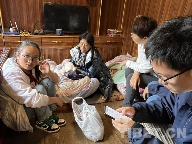 在義診活動進行的同時,幾位專家還分撥前往貧困家庭慰問。其中,北京地壇醫(yī)院的中醫(yī)科副主任楊玉英,北京地壇醫(yī)院婦科副主任劉軍,北京老年醫(yī)院呼吸科副主任劉前桂,北京大學(xué)第一醫(yī)院骨科副主任徐貝宇一行來到了離措拉鎮(zhèn)不遠的德西村山坡上,去阿珍家慰問看診。據(jù)了解,阿珍的母親沖曲措于 2019 年進行了胃癌手術(shù),術(shù)后做了五次化療,于 2020 年末完成化療。然而,2024 年 6 月份,沖曲措又被查出患有肺炎。由于吃不下飯,沖曲措體重嚴(yán)重下降,營養(yǎng)嚴(yán)重不良。。