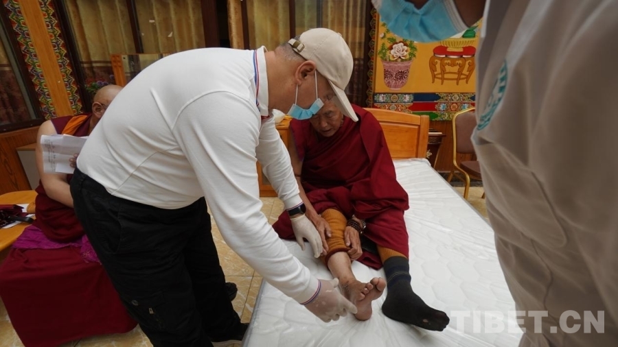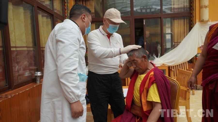 中國(guó)西藏網(wǎng)訊 7月10日,“同心·共鑄中國(guó)心”公益醫(yī)療團(tuán)隊(duì)走進(jìn)四川省甘孜藏族自治州理塘縣長(zhǎng)青春科爾寺(又名理塘寺),為寺內(nèi)僧人義診?,F(xiàn)場(chǎng)義診的專家們平均年齡都在四十歲以上,他們都是一邊與高原反應(yīng)抗衡一邊堅(jiān)持義診,秉承著“缺氧不能缺精神”的態(tài)度堅(jiān)持工作。