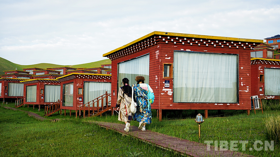 圖為兩名身著藏裝的香港學(xué)生準備回到文迦牧場的小木屋中。攝影:李泓慶