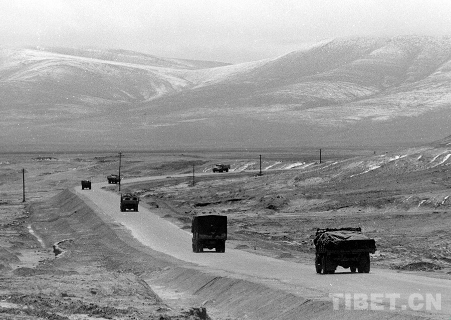 汽車車隊行駛在茫茫的唐古拉山區(qū)段(唐召明1987年攝)