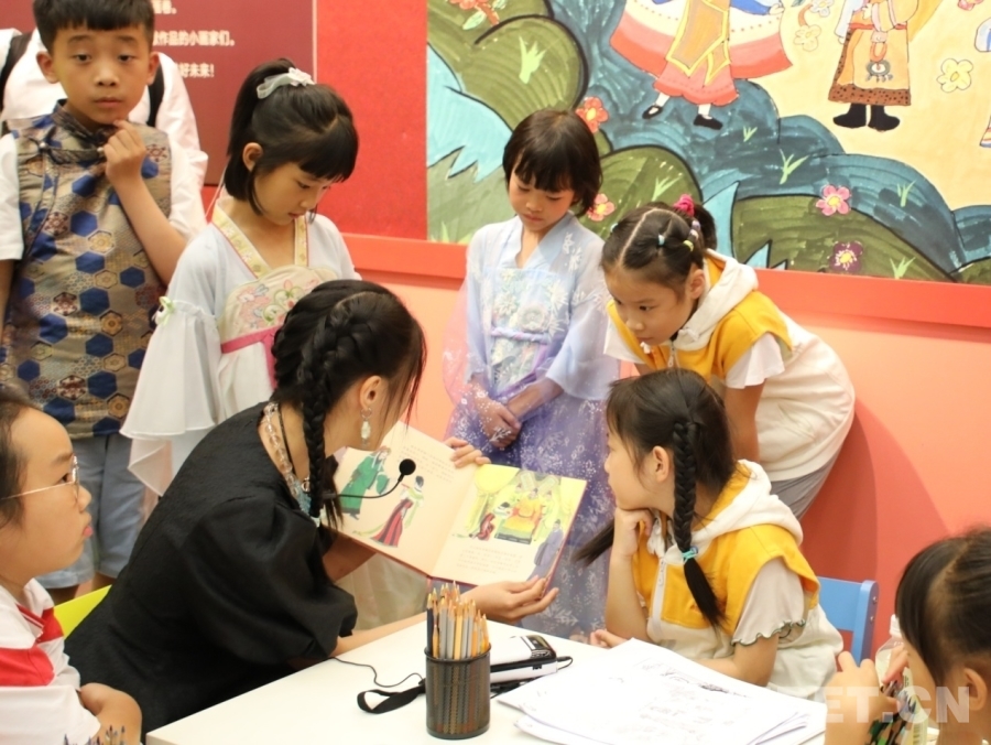 圖為開(kāi)幕式后,導(dǎo)讀老師為孩子們講中華歷史故事 攝影:王茜
