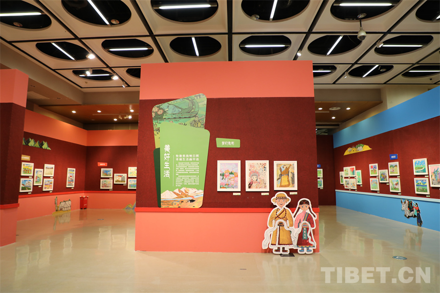 此次活動(dòng)邀請(qǐng)西藏、深圳、上海、北京等地400余名兒童圍繞“家園”“祖國(guó)”“生態(tài)”“未來(lái)”等題目創(chuàng)作了592幅作品,遴選出213幅展出。這些充滿生命色彩和奇妙想象的作品,圍繞西藏自治區(qū)在新時(shí)代的蓬勃發(fā)展,以確保國(guó)家安全和長(zhǎng)治久安、高質(zhì)量發(fā)展、保護(hù)生態(tài)環(huán)境以及強(qiáng)化邊疆建設(shè)為主旨,呈現(xiàn)了孩童心中璀璨絢爛的中國(guó)夢(mèng)。