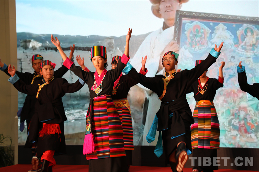 圖為開(kāi)幕式上,來(lái)自西藏的繪畫(huà)作者為觀眾表演舞蹈 攝影:王茜