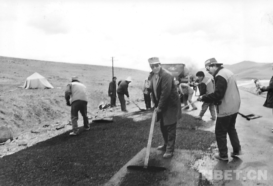 圖為1974年青藏公路改建工程。(西藏自治區(qū)交通運輸廳供圖)
