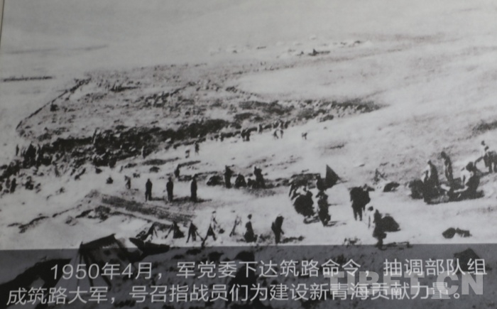 圖為1950年4月軍黨委抽調部隊組成筑路大軍 翻拍自青海省博物館 翻拍:王茜