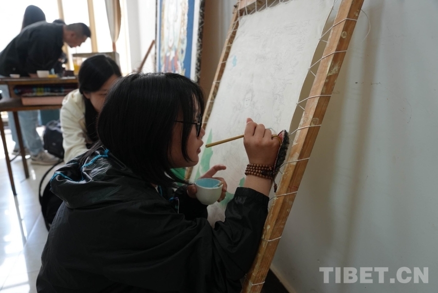 在熱貢畫院,師生們親眼目睹了畫師們的創(chuàng)作過程。畫師們?nèi)褙炞⒌乩L制著唐卡,一筆一畫間盡顯對(duì)藝術(shù)的執(zhí)著與熱愛。他們精湛的技藝和嚴(yán)謹(jǐn)?shù)膽B(tài)度讓大家深受觸動(dòng),更深刻地體會(huì)到了熱貢藝術(shù)的博大精深。