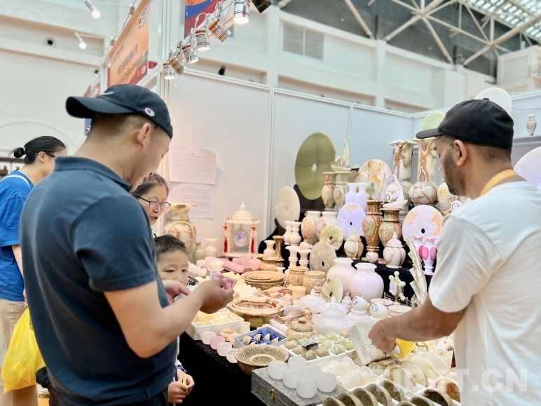 “你好,喜歡哪個(gè)給您介紹!”來自巴基斯坦的Sajid正和前來選購的客戶介紹巴基斯坦手工玉產(chǎn)品,展銷點(diǎn)有各式各樣的擺件、茶具、鐘表等,種類繁多,十分精美。他說:“我來拉薩已經(jīng)有三天了,這里氣候舒服,環(huán)境優(yōu)美,我還去過西藏的日喀則,那是個(gè)好地方。聽說雪頓節(jié)是西藏非常盛大的傳統(tǒng)節(jié)日,我很高興借此機(jī)會(huì)帶著巴基斯坦的工藝品來到拉薩,希望拉薩的朋友們喜歡?!?nbsp;