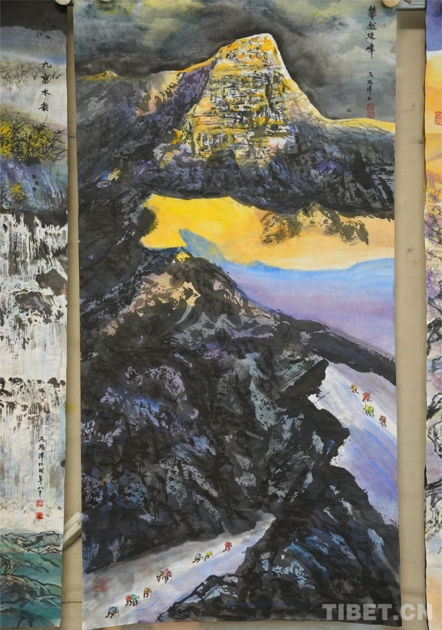 圖為尼瑪澤仁的畫作《攀越珠峰》 攝影:陳浩力