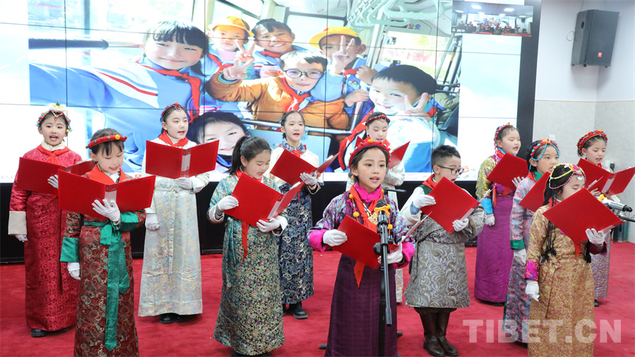 圖為拉薩市實驗小學(xué)和北京市海淀區(qū)中關(guān)村第二小學(xué)共同舉辦的“銘記歷史感黨恩 做新時代好少年”暨“西藏百萬農(nóng)奴解放紀(jì)念日誦讀歌詠活動”