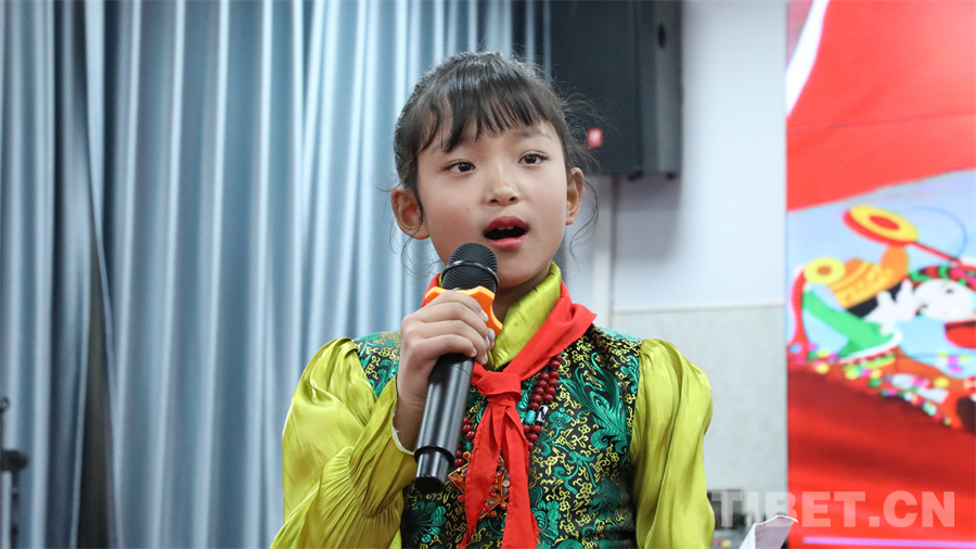 圖為拉薩市實驗小學(xué)賜單央吉同學(xué)誦讀《童心永向黨 童謠頌黨恩》