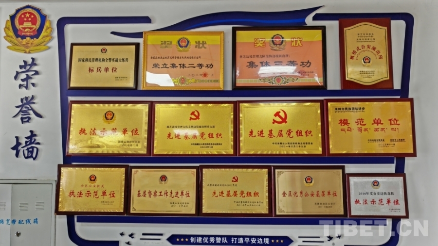 圖為羌納邊境派出所榮譽(yù)墻 攝影:馮重霖