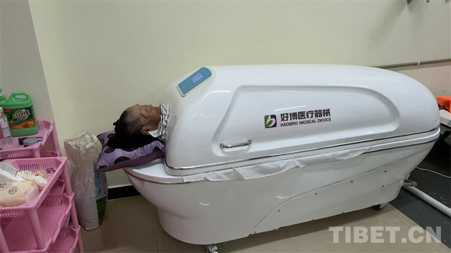 圖為當(dāng)?shù)乩先苏谙硎懿厮幯魴C(jī)的醫(yī)療護(hù)理