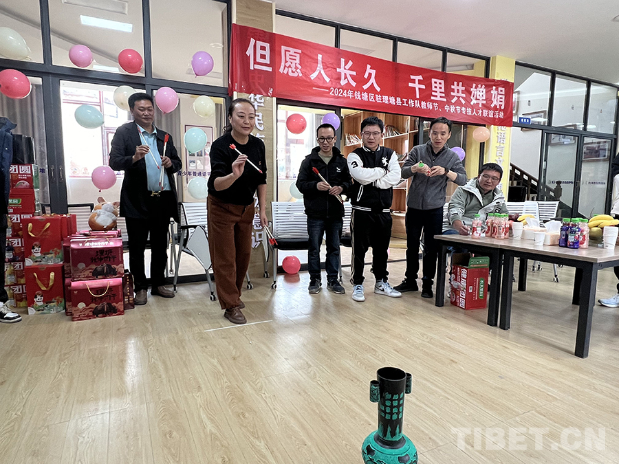 中國西藏網(wǎng)訊 9月13日,為慶祝中秋佳節(jié)和第四十個教師節(jié),浙江省杭州市錢塘區(qū)駐四川省甘孜藏族自治州理塘縣工作隊全體專技人才在理塘縣青少年普通話實訓(xùn)基地歡聚一堂,共話團(tuán)圓。
