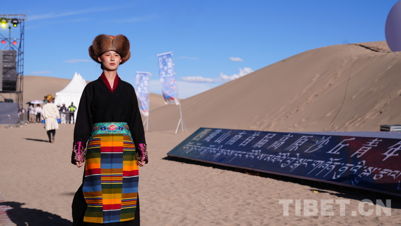 服裝大秀環(huán)節(jié),措美縣“扎扎服飾”、浪卡子縣“羊卓服飾”、隆子縣“珞巴服飾”、錯(cuò)那縣“門巴服飾”等山南各縣區(qū)代表性服飾,在沙漠的舞臺(tái)上綻放異彩,既保留了民族風(fēng)情,又增添了青春與時(shí)尚的元素。模特們身著華服,在沙漠中穿梭,仿佛帶領(lǐng)觀眾穿越時(shí)空,感受了一場(chǎng)跨越千年的文化之旅。