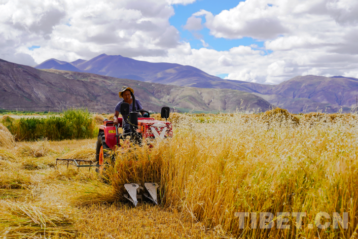 每年的這個時節(jié),對于莊稼人來說,都是疲憊又開心的,一季碩果,終于豐收。在西藏自治區(qū)日喀則市白朗縣洛江鎮(zhèn)洛江村,歐珠一家正在自家的青稞田里繁忙收割?!耙郧拔覀兪涨囡臅r候只能自己彎著腰一刀刀地割,現(xiàn)在物質生活提高了,我們家也買了專業(yè)的農具,不僅人省力了,收割效率也大大提高了。”