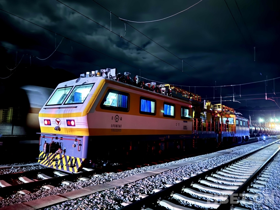中國西藏網(wǎng)訊 9月17日22時(shí)40分,隨著夜幕降臨,一輪皎潔的中秋明月悄然升起,撒下銀輝覆蓋了廣袤的青藏高原。在青藏鐵路堆龍曲大橋上,一組黃色接觸網(wǎng)作業(yè)車緩緩移動,明亮的車燈刺破黑夜。車內(nèi)13名觸網(wǎng)工正在互相系綁安全帶,為即將開始的接觸網(wǎng)秋檢作業(yè)忙碌著。