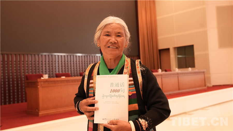 新書發(fā)布會結(jié)束后,來自山南市乃東區(qū)昌珠鎮(zhèn)的群眾代表尼瑪曲珍對著藏文的譯音標(biāo)注念了幾句常用普通話,她說:“發(fā)布會上,我一直在翻看這本書,基本都是我們能夠在日常生活和工作中經(jīng)常用到的短句,藏文的譯音標(biāo)注更為我們普通話初學(xué)者提供了很大的便利,回頭我要好好學(xué)習(xí)這本書的內(nèi)容,也將把這書推薦給身邊想要學(xué)好普通話的農(nóng)牧民群眾?!?/p>