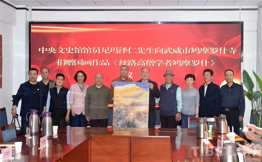 中國西藏網(wǎng)訊 9月23日,甘肅省武威市鳩摩羅什寺在蘭州舉辦《絲路高僧學(xué)者鳩摩羅什》國畫作品捐贈儀式,該作品由著名藏族畫家尼瑪澤仁捐贈。