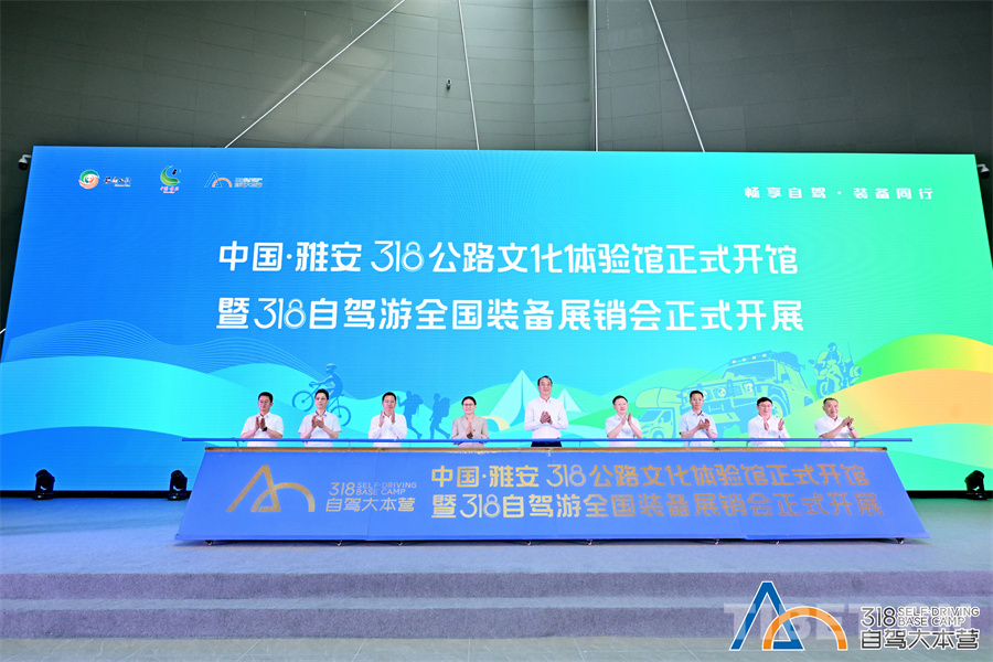 圖為在四川雅安舉行的318公路文化體驗(yàn)館開館暨318自駕游全國(guó)裝備展銷會(huì)開展儀式現(xiàn)場(chǎng)