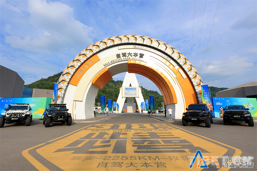 圖為中國(guó)·雅安318自駕大本營(yíng)的正門口