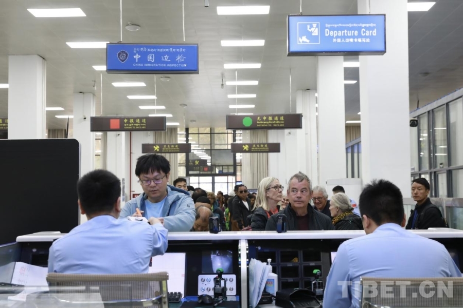 另一邊,在吉隆口岸出境大廳內,吉隆出入境邊防檢查站執(zhí)勤二隊副隊長曹剛正帶領著隊員為過境旅客辦理手續(xù)。關卡設置快捷便利,信息化的通關服務極大地提高了通關效率。來自福建的陳女士便是其中一位受惠者,“很多(尼泊爾的)邊民是因為購物出入境的,他們看我們是中國游客,就讓我們先過檢,通關挺順利的,也很快。”
